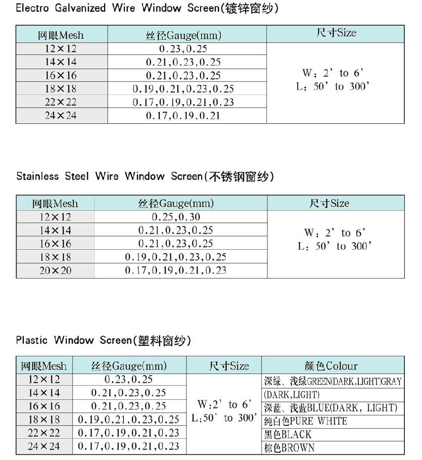 篩網類型:不銹鋼鐵絲網、鍍鋅鐵絲網、油漆篩網、防火篩網、鋁合金duxintie篩網、塑料、玻璃纖維、duxintie濾網